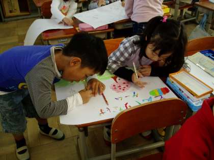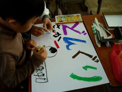 秋のフェスティバルの看板つくりやルールつくりも一生懸命やっています。店の出しものつくりと並行して頑張って作っています。