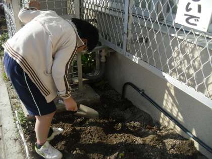 ホウレンソウとスナックエンドウの種まきをしました。今年の春スナックエンドウを沢山収穫しました。来年の春にも今年以上に収穫できることを期待しています。ひまわり学級の児童はホウレンソウがとても好きです。大きく育ってほしいです。