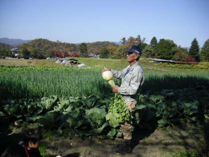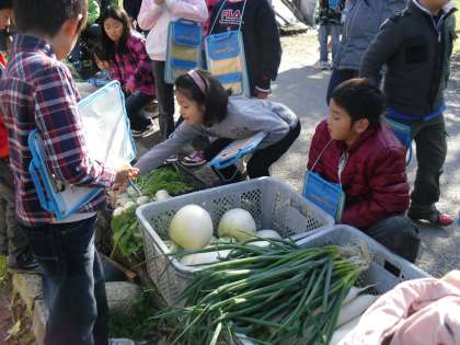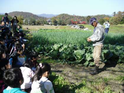 11月19日(月)今日は,地域の農家の音川さんにご協力で畑ととれた作物を見せて頂きました。子どもたちのいろいろな質問に丁寧に答えてくださいました。聖護院大根は,京都市の品評会で1位だったそうです。すごいことですね。