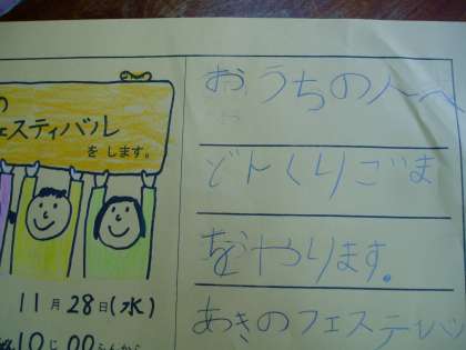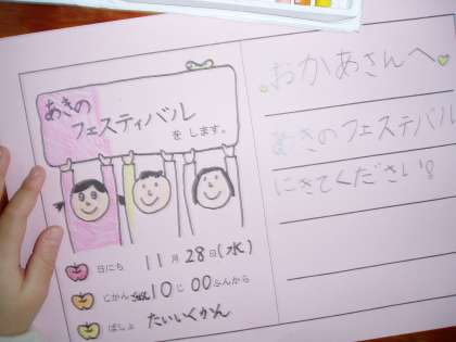 お家の人に宛てて,招待状を書き始めています。今週持って帰ります。みてあげてください。