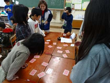 1年生から6年生までのたてわりグループで,たてわり遊びをしました。6年生がゲームを考えてくれました。色々な学年のお友達と遊ぶことができて,1年生はとても嬉しそうです。