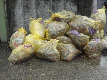 1時間ほどの清掃活動の間に持ちきれないほどの落ち葉が集まり,急遽リヤカーや一輪車を動員して学校ので運びました。