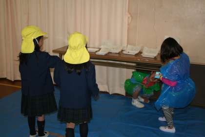 「どんぐりなげ」は,保護者の方も落ちたどんぐりを拾ってくださっていました。