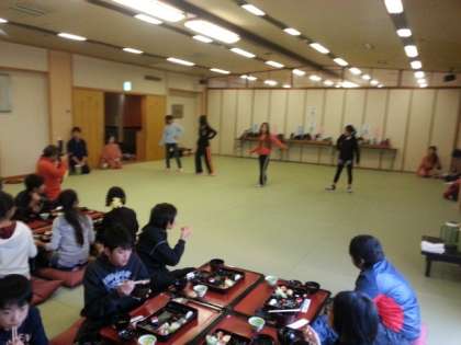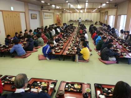 みんな眠い目で朝食に集まりました。たぶん?あまり寝ていないはずなのに,声かけなしで5分前に全員集まれたのはすばらしです。