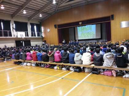 クラブの紹介・生徒会の学校生活紹介・全員合唱・歓迎演奏と盛りだくさんでした。