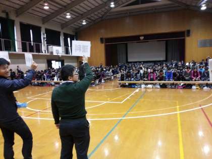 全体でのセレモニーで終わり,いよいよ体験授業に出発です!