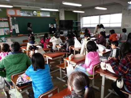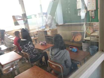 各教室に入って体験学習が始まりました。みんなとても緊張しています。
