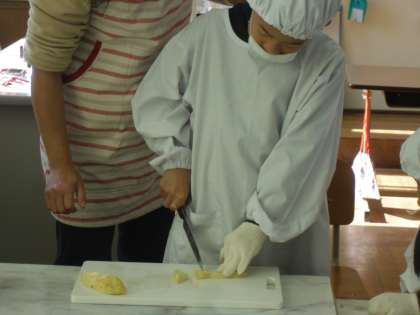 包丁を使っての作業では,さすが高学年が慣れた手つきで,切っていました。