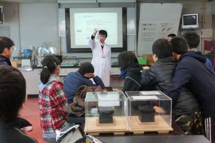最後の実験は,じしゃくと油の混ざったものをじしゃくにつっつけます。