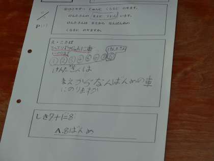 算数「ひとともののかず」の中の「なんばんめ」の練習をしました。車と人の置き換えにてこずっていました。