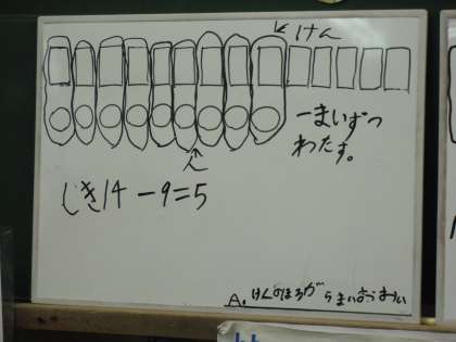 算数「ものとひとのかず」の授業をたくさんの先生方に見てもらいました。1年生は,はじめての経験でたくさん来られたのでびっくりとうれしいのと入り混じった気持ちで授業をしました。よく聞いていて,発表も頑張りました。
