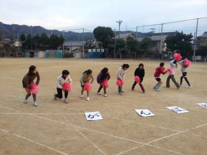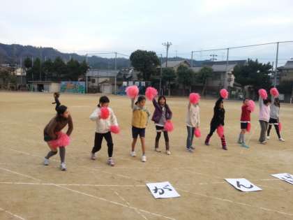明日15日(土)のソフトボールの練習試合に,チアリーディングクラブが応援参加します。寒い放課後のグランドで,一生けん命練習しています。本格的でかっこいいです。明日は天気が心配です。晴れて!