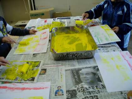 今日もローラーを使って背景の色をつけました。2回目なので,使い方も慣れてきたようです。