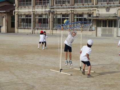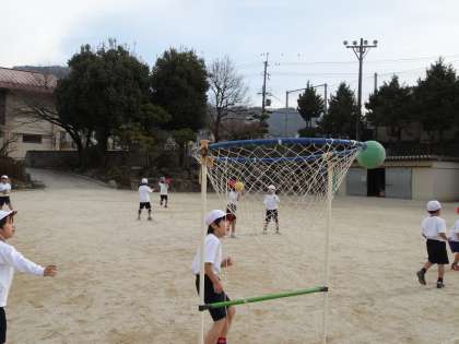 今日は,ボールを使ってパスをしてゴールに入れる練習をしました。はじめは,パスも落としている子がいましたが,だんだんとれるようになってきています。ゴールは大きいのですがなかなかシュートできません。これからも練習していきます。