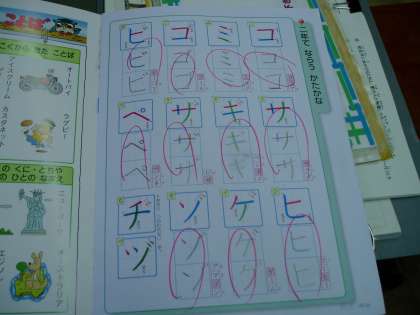 カタカナの学習が終わり,カタカナノートを持ち帰ってもらいました。学習は終わりましたが,引き続き書く練習は続けていきたいです。お家でも様子を見ていただければと思います。