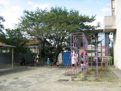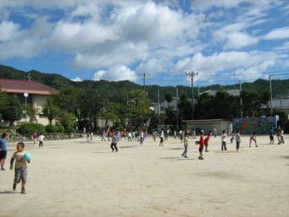 運動場の所々に水たまりが残っているものの天気も回復し,子どもたちは元気に遊んでいます。