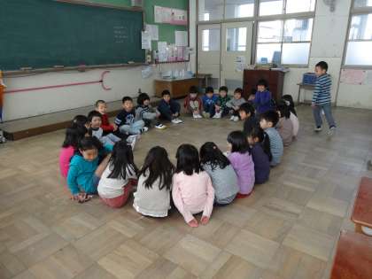 みんな遊びをしている様子です。4月からいろいろなみんな遊びをしてきたので,遊び方もよく分かるようになってきています。