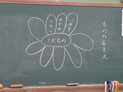 今日から,「ものの名まえ」の学習を始めました。今日は,「もの」には,「一つ一つの名まえ」と「まとめてつけた名まえ」があることを学習し,具体的なものの名まえ集めをしました。これは,次の「おみせやさんごっごをしよう」の学習につなげていきます。