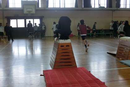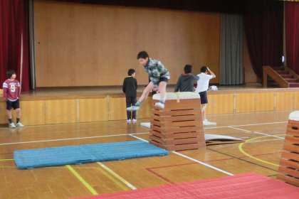 今までできた技の練習や新たな大技に挑戦したり,意欲的に取り組んでいます。