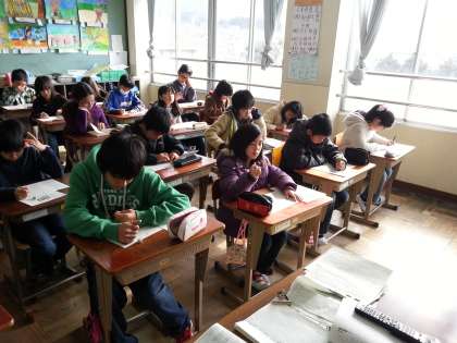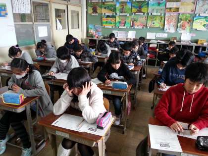 小学校で最後のジョイントプログラムテストです。「ジョイント」「つながる」という趣旨で実施されているこの取り組み。現テストの結果は各中学へ送られ,中学でのジョイントが始まります。がんばれ!