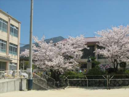 (写真は、春の修学院小学校の様子と運動場で遊ぶ子どもたちの様子です。)