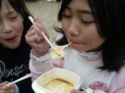 つづきです。「先生,ほんまおいしい!!」。そうです,木炭は炎を出さず燃えるのでもちの中まで熱が通りこんがりと焼けておいしいのです。やきとりもうなぎも