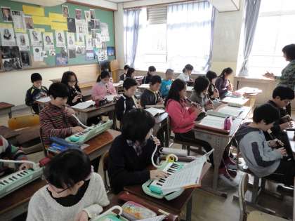 オルガン,鍵盤ハーモニカー,リコーダーのパートに別れての合奏です。