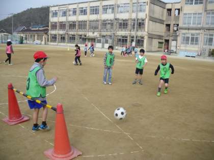 2月1日(金)早いものでもう1月がおわり,2月を迎えました。ほんの少し暖かくなったような気がします。体育の授業は,サッカーです。寒さに負けず走りまわっています。