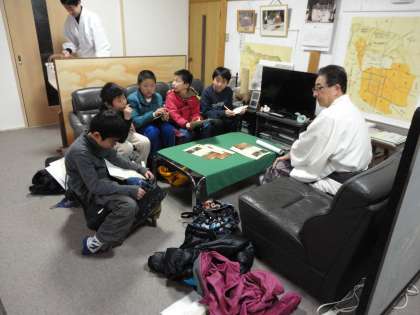 実際にある資料や境内を見せて貰いながらのお話は大変分かりやすく,子どもたちは目を丸くして一生懸命聞いていました。