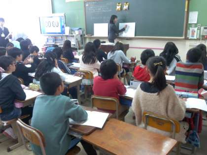 本校では,算数科を通してコミュニケーション能力を高める取組を行っており,みんなの前で自分の考えたことや友達の意見についてのおもいを述べる中で自分の考えや思いに深まりが出てきました。そうした取組の一端を参会の皆様に見ていただくことができました。