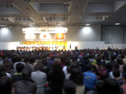 レース後,表彰式がおこなわれ,全員が舞台にあがって賞状・楯・トロフィーをいただきました。
