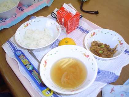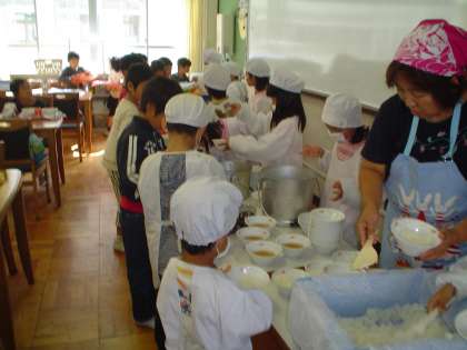みんな上手に準備して、楽しい給食時間を過ごしました。陶器で食べる給食は食欲を増大させます。