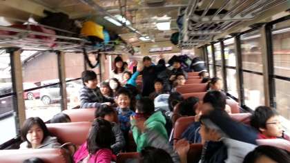 山の家の道中は,鞍馬付近を境目に車窓が一変しました。一面の銀世界に子どもたちも驚きです。車内は,外の寒さを吹き飛ばすような熱気で満ちあふれています。