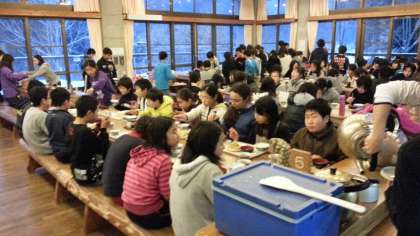 みんなで楽しい食事のひとときです。気温は,夜になってどんどん下がってきましたが,心のぬくもりを感じる時間です。