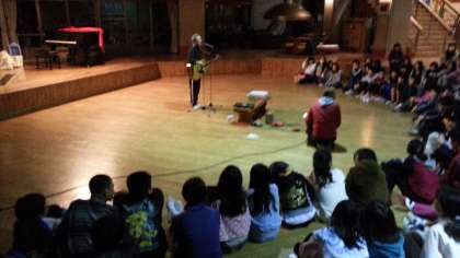 夜の集いは,プレイホールで歌や踊りそして校長先生のコンサートと盛りだくさんでした。