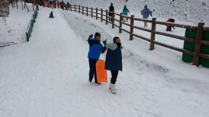 2日目も朝から雪遊びです。やっぱり何度滑ってもやめられない楽しさがあります。