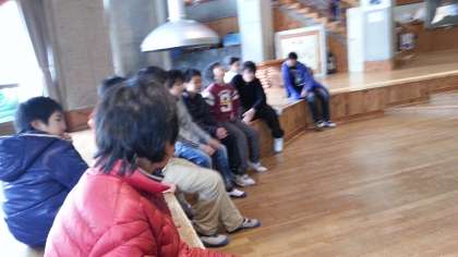 昼食前思い思いの時間過ごしています。プレイホールで談笑する子もいれば,外で雪だるまなどを作って楽しむ子もいます。ふだんの学校生活では味わえない貴重な時間です。