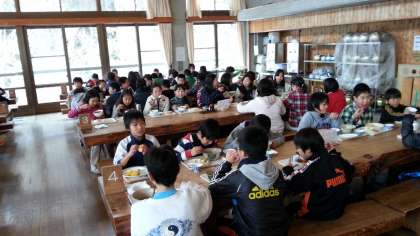食事のあと,12時30分から退所式,そして13時前に山の家を出発し,14時前ぐらいに帰校の予定です。