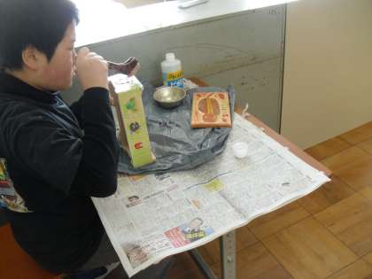 オルゴールが出来上がってきています。今日はニスを塗りました。「ツチノコ」がピカッと光るようになってほしいです。