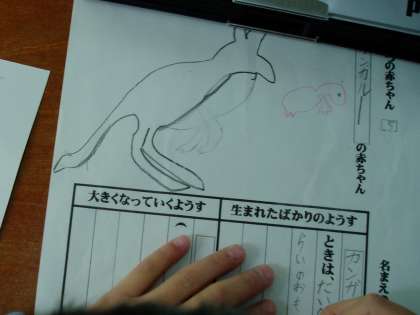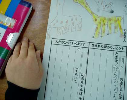 動物の赤ちゃんの生まれたばかりの様子と大きくなっていく様子とを書きまとめて,清書をしました。清書した文の上に赤ちゃんの絵を描いて完成です。