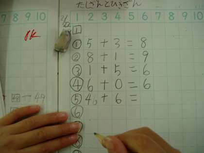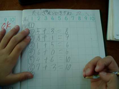 ノートを使っておさらいをしています。足し算や引き算などを繰り返し練習し,早く正確にできるようにしていきたいと思っています。