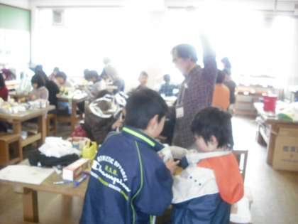 わくわくワークショップでは,牛乳パックを使ったヘビづくりに子どもたちも熱中していました。