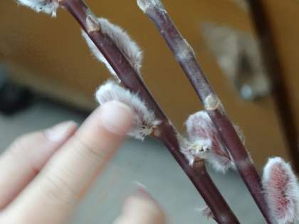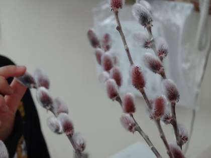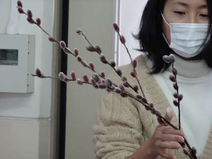 今日は,お花を生けておられる方から「ねこやなぎ」をいただきました。名前の由来どおり,さわると猫のような感触です。1年生は,競って触りに来ていました。