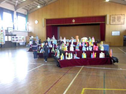 子どもたちが豊かな感性で作り上げた力作がずらりとそろっています。また,クラブ活動などで取り組んだ作品も飾られています。さらに本校区にある福祉施設「修光学園」の皆さんの作品や本校区に在住する支援学校在学児童の作品も展示しています。