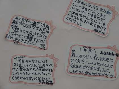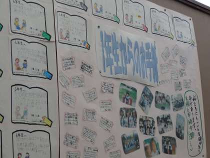 毎日,そうじを手伝ってくれている6年生にお手紙を届けたら,6年生が6年生からのお返事とともに,模造紙に掲示してくださいました。
