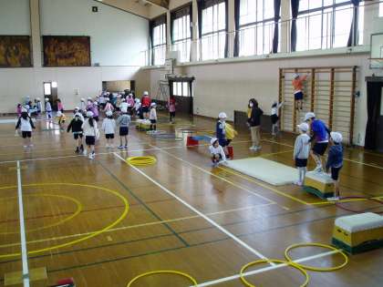 体育館で精一杯「ようぐあそび」を楽しみました。きっとこれで,1年生最後の「ようぐあそび」になると思います。