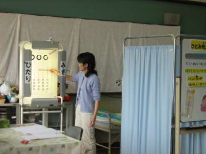 視力検査を行っています。後日,検査結果をお知らせします。結果が悪い場合は,早めに専門機関で調べてもらってください。
