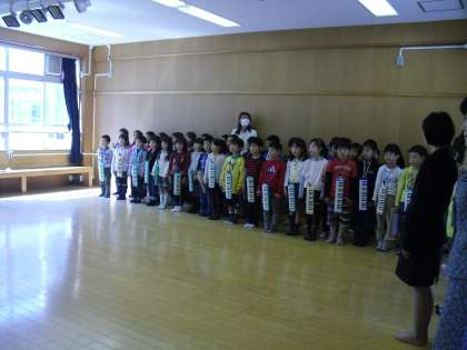 今日は入学式をむかえて最後の練習を子どもホールでしました。時間がちかづいてくるについて「ドキドキ」が強くなってきたようです。本番の体育館に入る前は緊張で心配でした。