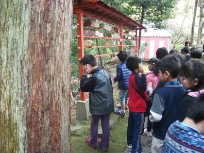 赤山禅院・砂防ダムに2年生と一緒に行きました。赤山禅院では桜を見たり、屋根の上の猿を探したりしました。