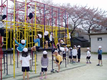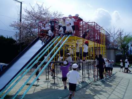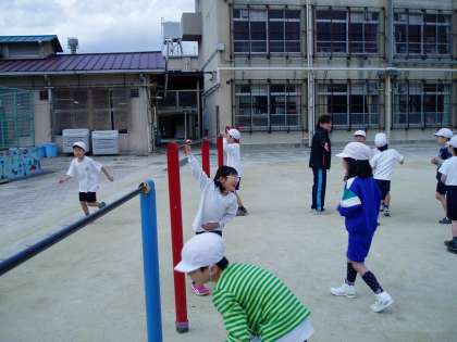 今日の体育は総合遊具、登り棒、鉄棒をしました。それぞれに得意なもの、苦手なものがありますが、子どもたちは自分の課題に一生懸命に取り組んでいました。1年生の時よりできるようになると、とてもうれしそうでした。